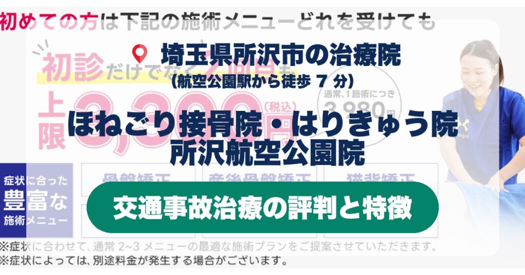 ほねごり接骨院・はりきゅう院 所沢航空公園院(所沢市)|交通事故治療の評判と特徴
