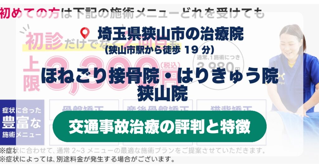 ほねごり接骨院・はりきゅう院 狭山院(狭山市)|交通事故治療の評判と特徴