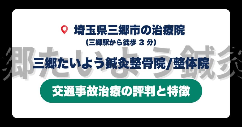三郷たいよう鍼灸整骨院/整体院(三郷市)|交通事故治療の評判と特徴
