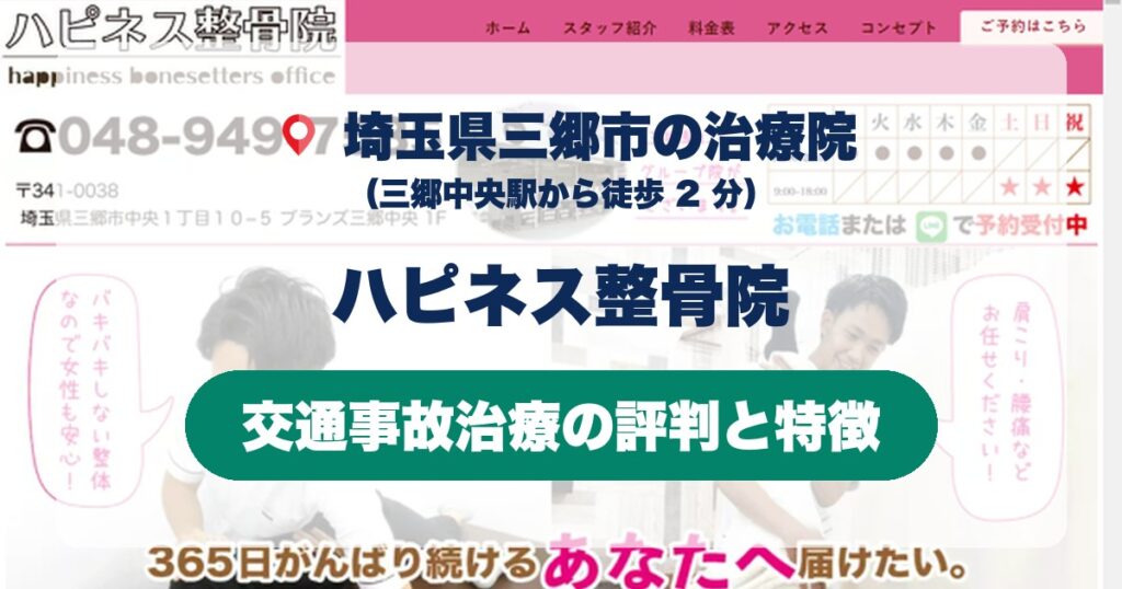 ハピネス整骨院(三郷市)|交通事故治療の評判と特徴
