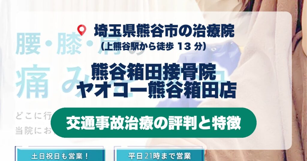 熊谷箱田接骨院 ヤオコー熊谷箱田店(熊谷市)|交通事故治療の評判と特徴